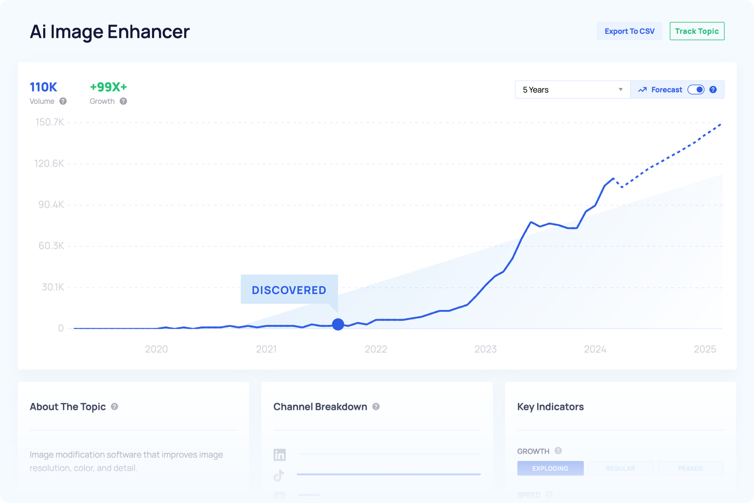 Get deep-dive data on any trend, including growth, search metrics and channel-level insights.
