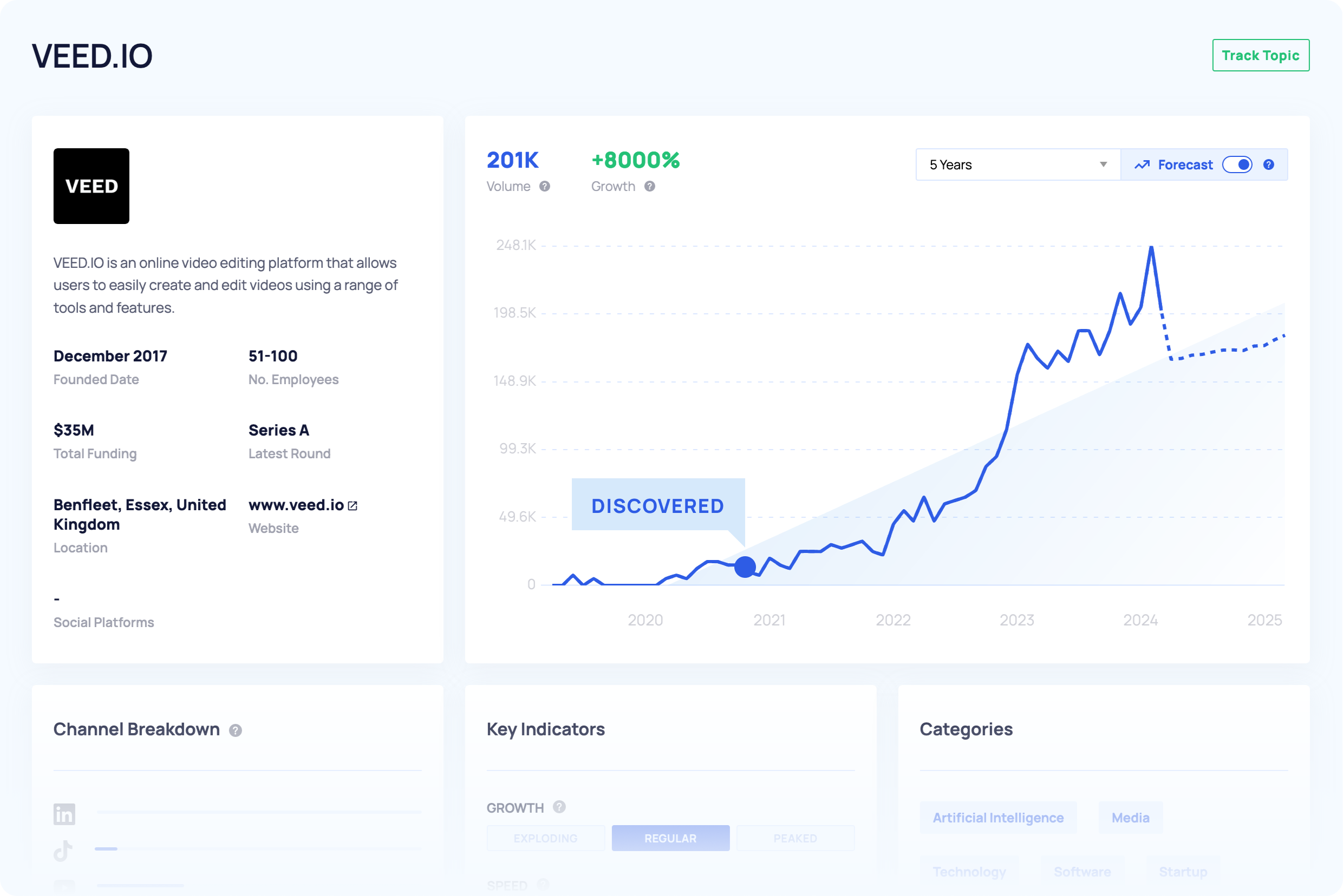 Find emerging startups with early, exponential growth signals.