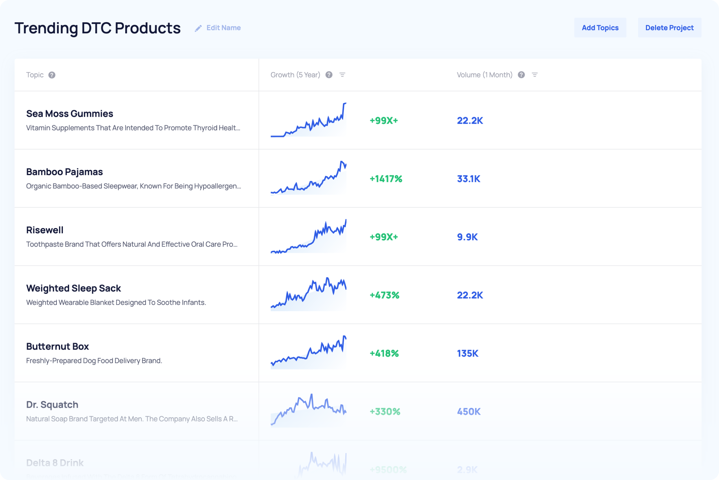 Instantly see hundreds of trending DTC products with long-term growth potential.
