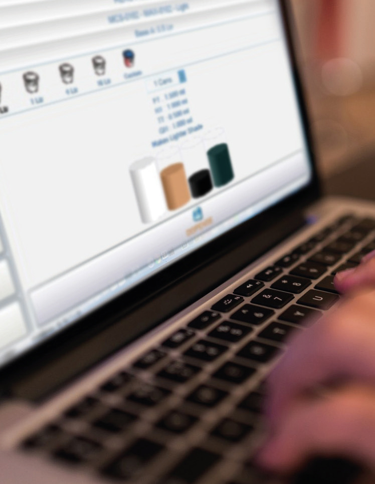 Dispensing and mixing equipment, both in-can and in-batch, based on customer needs.