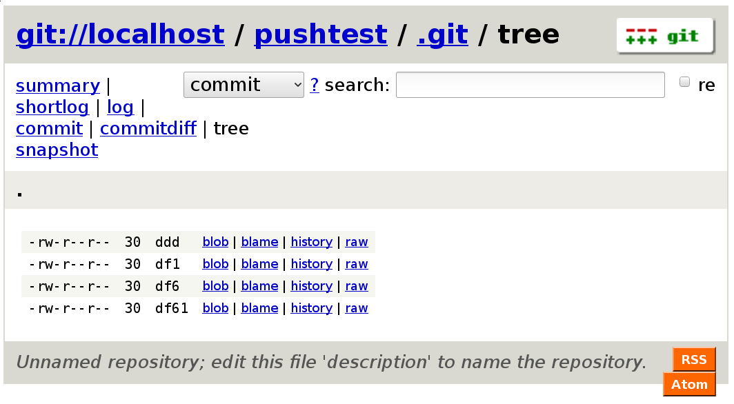 Once the remote is added to your working Git repository, you should be able to keep using the last push command to send your local commits to the Git repository at /var/lib/git/pushtest so you can see them with the web interface.