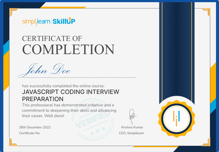 You will receive a completion certificate upon completing the JavaScript interview preparation course. This certificate recognizes your efforts and achievements in mastering JavaScript interview techniques.
