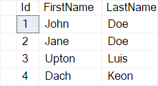 VALUES('Dach', 'Keon');Code language: SQL (Structured Query Language) (sql)Finally, view the backup file: