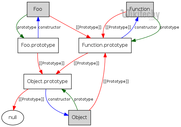 - If a member of an object can't be found in the object it looks for it in the prototype chain. The chain consists of other objects. The prototype of a given instance can be accessed with the __proto__variable. Every object has one, as there is no difference between classes and instances in javascript.